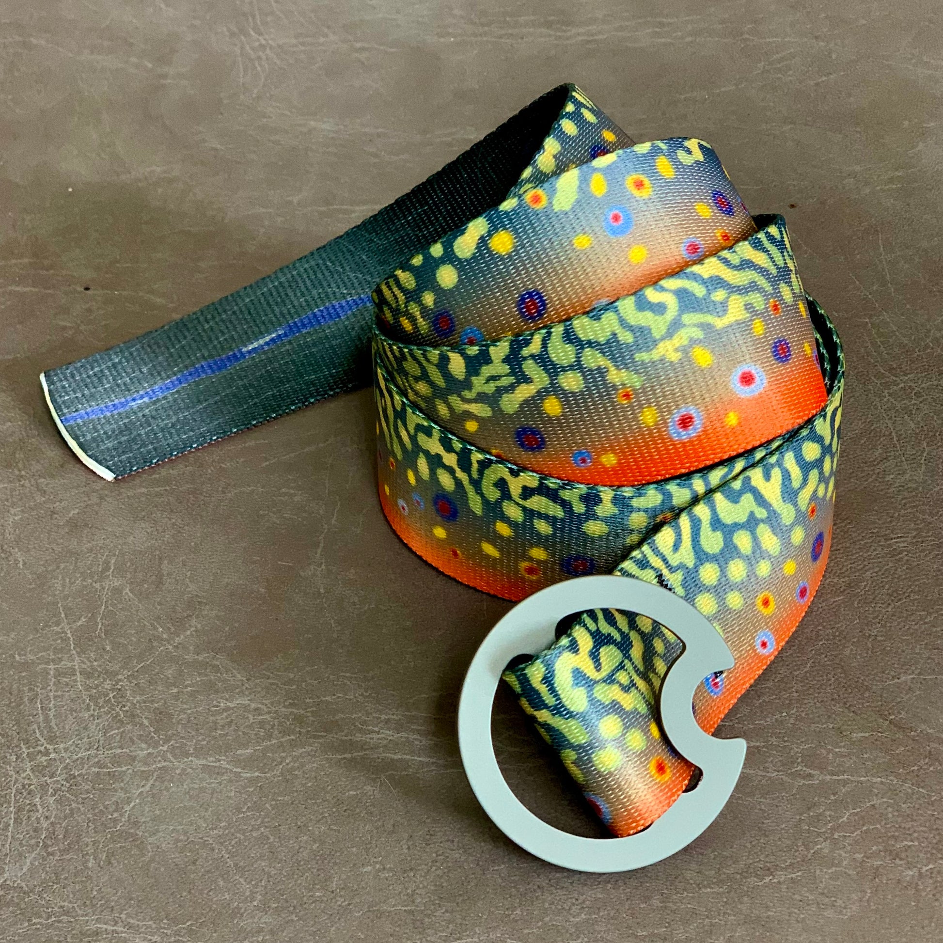Add authentic design and color variation to your wardrobe with a new fish belt - the BROOK TROUT BELT. Now reversible with river topo on the inside.