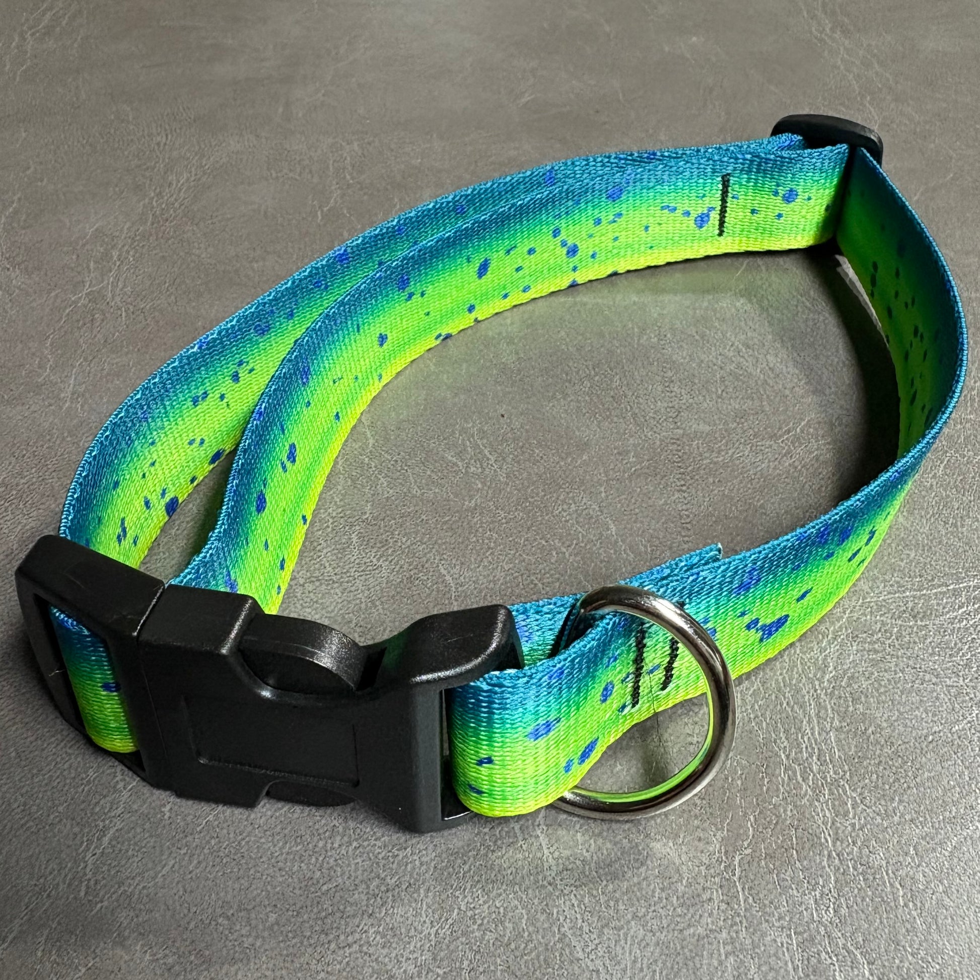 Our collars are made from 1" polyester webbing with the same designs as our most popular belts. All collars are hand stitched with a durable double bar-tack and feature heavy duty black plastic contoured side release buckles. D rings are heavy gauge nickel plated steel. The construction is as simple as you can get with no frills.....just high quality and function.
