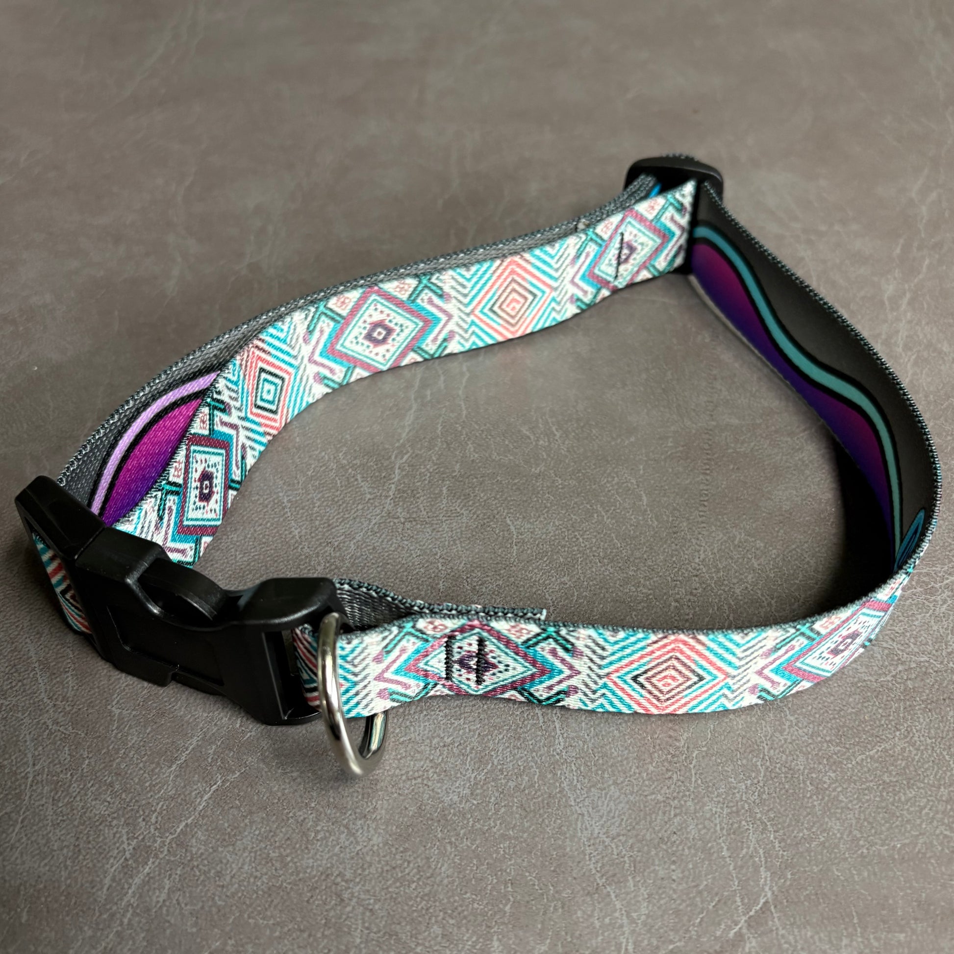Our collars are made from 1" polyester webbing with the same designs as our most popular belts. All collars are hand stitched with a durable double bar-tack and feature heavy duty black plastic contoured side release buckles. D rings are heavy gauge nickel plated steel. The construction is as simple as you can get with no frills.....just high quality and function.