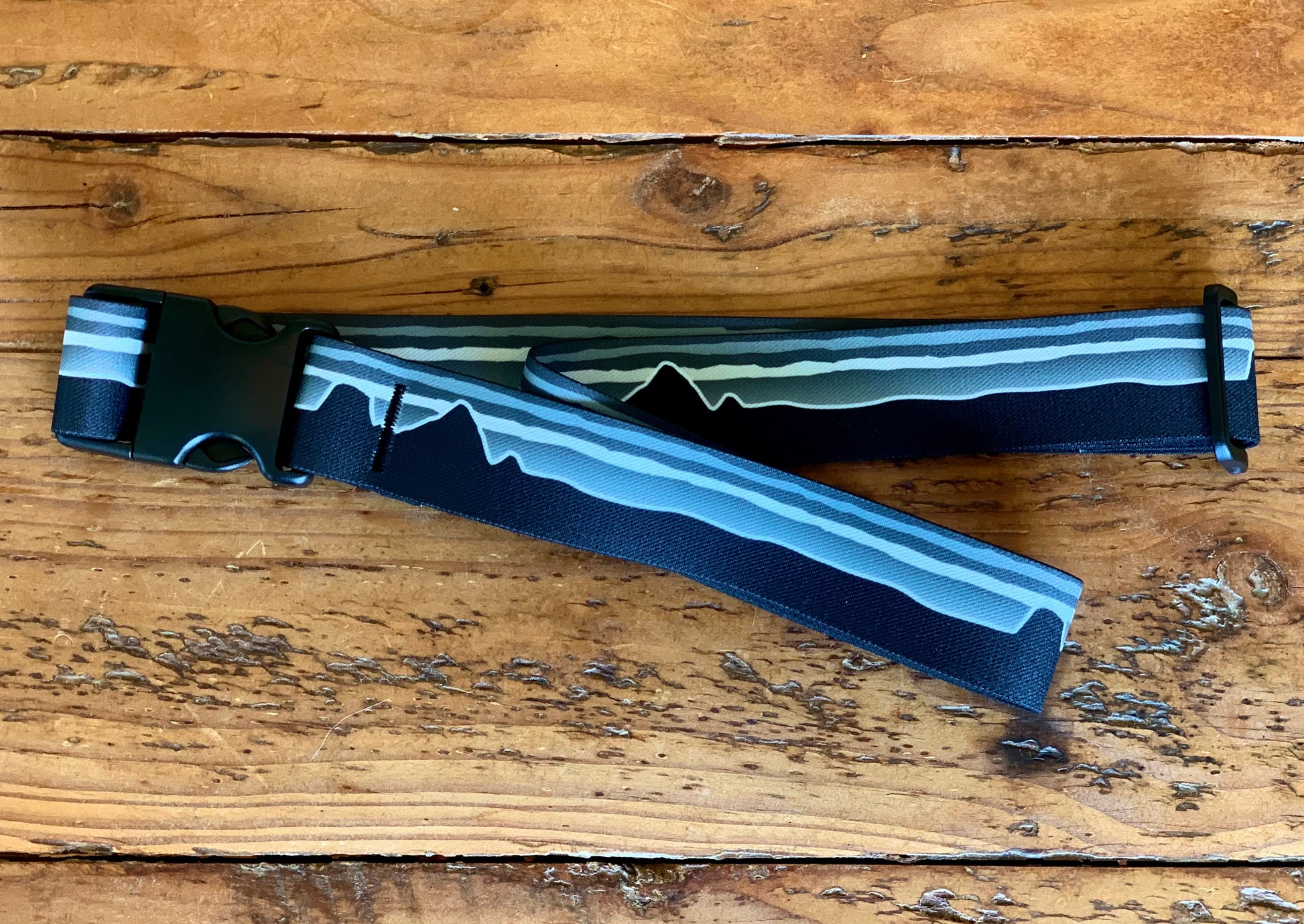 This 1.5" wide x 52" long elastic wading belt with heavy duty YKK side release buckles features a unique mountain horizon in gray scale. It is fully adjustable to most waist sizes with the ability to adjust to desired tightness. The vivid colors are fade and bleed resistant, ensuring long-lasting wear. The design perfectly complements standard Simms and Patagonia wader colors.