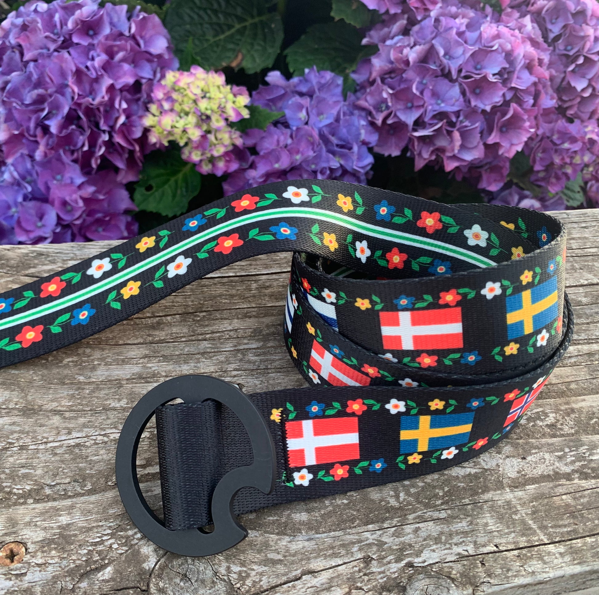 Rep your Scandinavian heritage with the SCANDINAVIAN REVERSIBLE BELT. Inside of the belt is flowers with a center stripe.